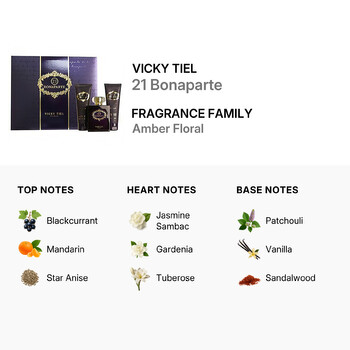 Step into timeless elegance with 21 Bonaparte by Vicky Tiel, a luxurious ladies’ fragrance gift set that captures the spirit of classic femininity and modern charm. Launched in 2013 by the iconic fashion design house Vicky Tiel, this Amber Floral scent offers a rich and romantic aroma, perfect for women who appreciate style and sophistication in every detail.