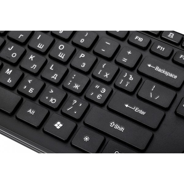- სრული ზომის უკაბელო კლავიატურა, თხელი დიზაინით