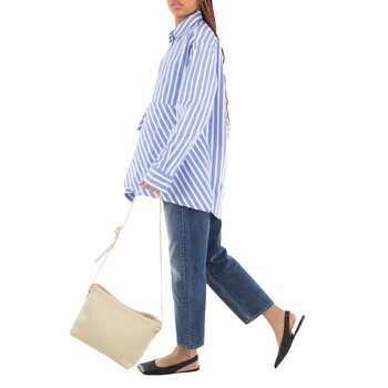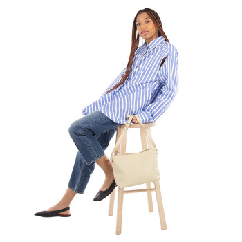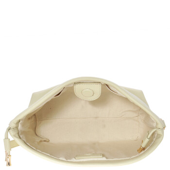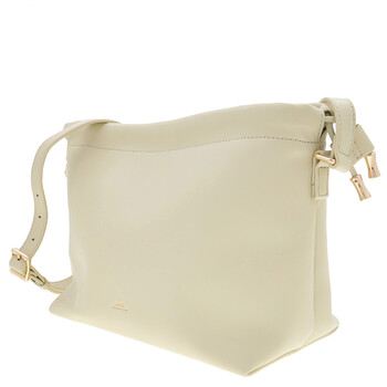 A.P.C. Ladies Crossbody. SKU: PUAAT-F61583-VANILLE. Barcode: 3613061661881. Color: Vanille. Size: 8.2 x 10.3 x 5.5". A.P.C. Vanille Ladies Ninon Crossbody Bag. This bag features a recycled leather-look material with an internal magnetic closure and a drawstring top. It includes a versatile shoulder strap that can be worn on the shoulder or across the chest, as well as an interior pocket for organization. The front is adorned with a goldtone embossed 'A.P.C. Rue Madame Paris' logo, adding a touch of elegance. 60% Polyurethane. 40% Polyester.