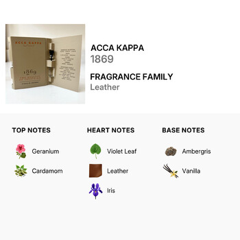 Belonging to the Leather fragrance family, 1869 opens with a fresh and spicy burst of geranium and cardamom. As the scent develops, a heart of violet leaf, smooth leather, and soft iris adds depth and warmth. Finally, a base of ambergris and creamy vanilla leaves a lasting impression that’s both comforting and confident. It’s a masterful blend of strength and elegance.