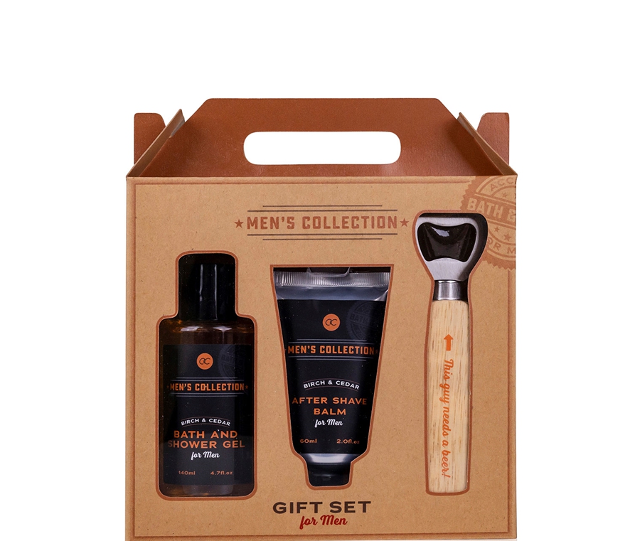 ნაკრები შეიცავს მამაკაცის შხაპ-გელს, პარსვის შემდგომ ლოსიონს და ბოთლის სახსნელს. ანიჭებს არყის და კედარის სურნელს.