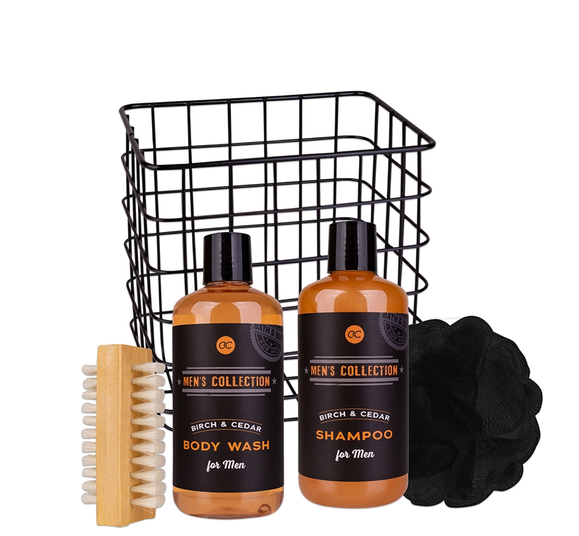 ნაკრები შეიცავს მამაკაცის შხაპ-გელს, შამპუნს, სხეულის ღრუბელს, ფრჩხილების ფუნჯს და კალათას. ანიჭებს არყის და კედარის სურნელს.