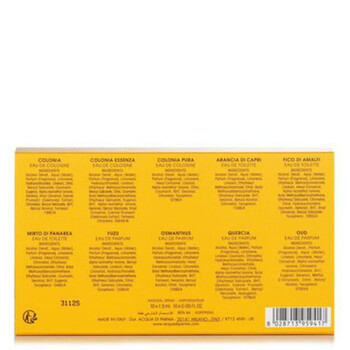 Immerse yourself in the world of luxury fragrances with the Acqua Di Parma Ladies Selection Set. This exquisite collection, designed by the distinguished design house of Acqua Di Parma, is the perfect gift for the elegant and sophisticated woman in your life, or a delightful treat for yourself. Each fragrance radiates with unique notes, enabling you to discover a new scent each day.