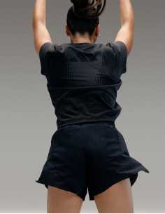 84% პოლიესტერი (გადამუშავებული); 16% ელასტანი