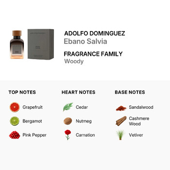 Discover the bold and captivating essence of Adolfo Dominguez Men's Ebano Salvia Eau de Parfum Spray, a fragrance designed for the modern man who appreciates timeless sophistication. Launched in 2023 by the renowned Spanish fashion house, this 4.1 oz scent blends style and substance into a rich, woody experience that leaves a lasting impression.