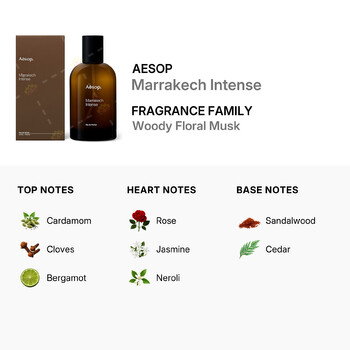 Discover the bold and captivating essence of Aesop Marrakech Intense Eau de Parfum Spray for Men. Launched in 2014 by the renowned Australian niche fragrance house, Aesop, this 3.4 oz scent delivers a rich and expressive aroma that speaks to the modern man with a taste for the extraordinary. Designed for those who appreciate depth and character in their fragrance, Marrakech Intense is a true standout in the Woody Floral Musk family.