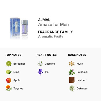 Crafted by the world-renowned design house Ajmal, Amaze for Men captures the spirit of confidence and adventure. This EDP is perfect for men who want a fragrance that’s as bold and dynamic as they are. Whether you're heading to the office or out for the evening, Amaze for Men keeps you feeling fresh and in control all day long.