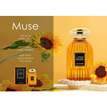 Designed by the renowned house of Ajyad, Muse stands out as a beacon of quality and elegance. This ladies' fragrance is not just about smelling good—it's about making a statement. Whether you're heading to a business meeting or a romantic dinner, Muse complements your natural charm and confidence.