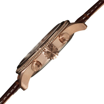 Rose gold-tone stainless steel case with a brown leather strap. Fixed rose gold-tone bezel. Rose gold sunray dial with luminous black hands and alternating index and Arabic numeral hour markers. Arabic numeral minute markers (at 5 minute intervals). Minute markers around the outer rim. Dial Type: Analog. Luminescent hands and markers. Date display at the 4 o'clock position, Day of the week sub-dial. Chronograph - two sub-dials displaying: 60 second and 30 minute. Swiss quartz movement. Scratch resistant mineral crystal. Pull / push crown. Solid case back. Case diameter: 44 mm. Case thickness: 11 mm. Round case shape. Band width: 20 mm. Band length: 9 inches. Tang clasp. Water resistant at 100 meters / 330 feet. Functions: chronograph, date, day, hour, minute, second. Casual watch style. Akribos Ultimate Chronograph Rose Gold-Tone Men's Watch AK575BR.