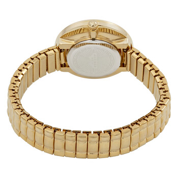 Yellow gold-tone stainless steel case with a yellow gold-tone expansion bracelet. Fixed yellow gold-tone bezel. Mother of pearl dial with yellow gold-tone skeleton hands and diamond hour markers. Arabic numerals mark the 3, 6, 9 and 12 o'clock positions. Dial Type: Analog. Quartz movement. Scratch resistant mineral crystal. Pull / push crown. Solid case back. Round case shape. Case size: 31 mm. Case thickness: 10 mm. Band width: 11 mm. Water resistant at 10 meters / 33 feet. Functions: hour, minute, second. Impeccable Series. Casual watch style. Akribos XXIV Mother of Pearl Dial Yellow Gold-tone Ladies Watch AK765YG.