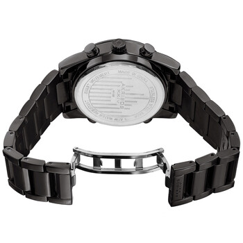 Black-plated composite metal case with a black-plated stainless steel bracelet. Fixed black-plated composite metal bezel. Black dial with luminous silver-tone hands and alternating Roman numeral and index hour markers. Minute markers. Tachymeter markings around the outer rim. Dial Type: Analog-digital. Luminescent hands. Digital calendar. Quartz movement. Scratch resistant Hardlex crystal. Pull / push crown. Solid case back. Round case shape. Case size: 45 mm. Case thickness: 14.5 mm. Band width: 24 mm. Band length: 8.5 inches. Hidden fold over clasp. Water resistant at 30 meters / 100 feet. Functions: date, hour, minute, second, tachymeter. Sport watch style. Watch label: Made in China. Akribos XXIV Quartz Black Dial Men's Smart Watch AK1095BK.