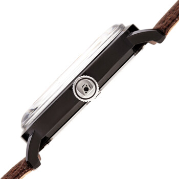 Black-plated composite metal case with a brown leather strap. Fixed black-plated composite metal bezel. Brown dial with luminous pencil-style hands and Arabic numeral hour markers. Arabic numeral minute markers (at 5 minute intervals). Minute markers around the outer rim. Dial Type: Analog. Luminescent hands and markers. Date display at the 6 o'clock position. Quartz movement. Acrylic crystal. Pull / push crown. Solid case back. Round case shape. Case size: 41 mm. Case thickness: 11 mm. Band width: 20 mm. Band length: 7.5 inches. Tang clasp. Water resistant at 10 meters / 33 feet. Functions: date, hour, minute, second. Fashion watch style. Akribos XXIV Quartz Brown Dial Men's Watch AK1025BKBR.