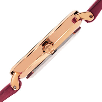 Rose gold-tone alloy case with a pink leather strap. Fixed rose gold-tone alloy bezel. Rose dial with rose gold-tone hands and diamond hour markers. Dial Type: Analog. Quartz movement. Scratch resistant mineral crystal. Pull / push crown. Stainless steel, snap down case back. Round case shape. Case size: 28 mm. Case thickness: 6 mm. Band width: 12 mm. Tang clasp. Water resistant at 30 meters / 100 feet. Functions: hour, minute, second. Casual watch style. Akribos XXIV Quartz Diamond Rose Dial Ladies Watch AK882PK.
