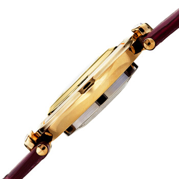 Gold-tone composite metal case with a brown leather strap. Fixed gold-tone and silver-tone bezel. White dial with gold-tone hands. No markers. Dial Type: Analog. Quartz movement. Scratch resistant mineral crystal. Pull / push crown. Solid case back. Round case shape. Case size: 33 mm. Case thickness: 10 mm. Band width: 12 mm. Band length: 7 inches. Tang clasp. Water resistant at 30 meters / 100 feet. Functions: hour, minute. Fashion watch style. Akribos XXIV Quartz White Dial Ladies Watch AK1060PU.