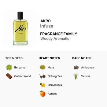 Designed for those who appreciate refined and balanced fragrances, Akro Infuse is more than just a scent—it's an experience. The unique combination of top, heart, and base notes creates a multi-layered aroma that evolves beautifully over time.