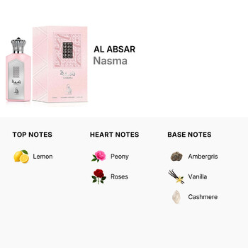 Created by the prestigious Middle Eastern fragrance house Al Absar, Nasma captures the essence of beauty and grace in every spray. Its rich layers and long-lasting formula make it a must-have addition to any fragrance collection. Whether you're heading to a brunch, a dinner date, or a night out, Nasma enhances your presence with elegance and confidence.