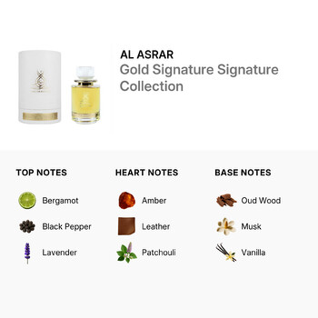 Discover the luxurious charm of Gold Signature Signature Collection by Al Asrar, a unisex Eau de Parfum crafted for those who appreciate elegance in every detail. This 3.4 oz fragrance is a masterful blend of rich, bold, and aromatic notes, designed to leave a lasting impression wherever you go.