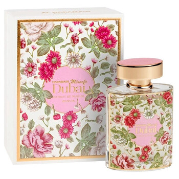 Introducing Miracle Dubai, an exquisite fragrance crafted exclusively for ladies by the renowned design house, Al Haramain. Nestled in the heart of the United Arab Emirates, Al Haramain is celebrated for creating luxurious Middle Eastern perfumes. Miracle Dubai Extrait de Parfum Spray, available in a generous 3.3 oz size, is a masterpiece that captures the essence of elegance and sophistication.