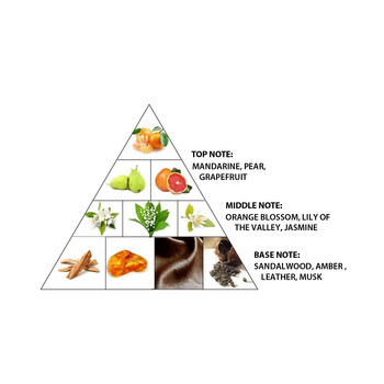 The journey begins with a refreshing burst of mandarin, pear, and grapefruit, creating a bright and uplifting opening. As the fragrance unfolds, the heart reveals a delicate bouquet of orange blossom, lily of the valley, and jasmine, adding a graceful floral touch. Finally, the base notes of sandalwood, amber, leather, and musk provide a rich and sensual foundation, leaving a lasting impression of warmth and depth.