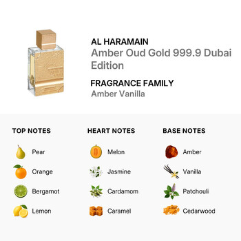 Experience the luxurious essence of Al Haramain Amber Oud Gold 999.9 Dubai Edition, an exquisite unisex fragrance crafted for those who appreciate sophistication and elegance. Launched in 2024, this scent is a masterpiece from the renowned Middle Eastern fragrance house of Al Haramain, based in the United Arab Emirates. Designed to captivate the senses, this fragrance blends rich, warm, and sweet notes to create an unforgettable olfactory experience.