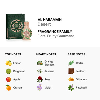 Al Haramain Desert Perfume Oil is available for shipment within the Contiguous United States and Canada only. Elevate your fragrance game with this unforgettable scent and embrace the exotic elegance of the Middle East with every wear.