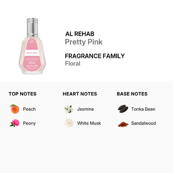 Designed by the niche fragrance house Al Rehab, based in Saudi Arabia, Pretty Pink is more than just a perfume—it's a personal signature of style and refinement. The delicate blend of floral and fruity aromas makes it versatile enough for all occasions, whether it's a casual daytime outing or a glamorous evening event. Its warm and inviting scent leaves a lasting impression wherever you go.