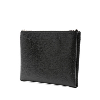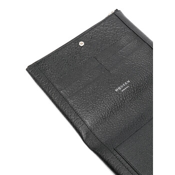 Alexander McQueen Ladies Pouch. SKU: 804436 1T1BN 1000. Barcode: 3666582721312. Color: Black/Silver. Alexander Mcqueen Black / Silver Ladies Cross Bar Clutch. Crafted from textured leather, this clutch features a zip-top fastening with a snap button closure for added security. Inside, it offers card compartments and an internal pocket for convenient organization. The interior is stamped with the logo, while the exterior is detailed with a logo plate, adding a subtle yet stylish touch. 100% calfskin. Made in Italy.