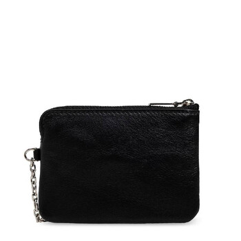 Alexander McQueen Ladies Pouch. SKU: 804435 1T1AN 1000. Color: Black/Silver. Alexander Mcqueen Black / Silver Ladies Leather Sling Card Holder. Made from grained calf leather, this piece features a logo plaque, top zip fastening, and a wrist strap. It is accented with silver-tone hardware and includes a spacious main compartment. Calf Leather 100%, Metal 100% Made in Italy.