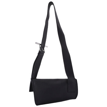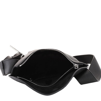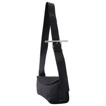 Alexander McQueen Ladies Crossbody. SKU: 808521 1VDBF 1000. Barcode: 3666582720711. Color: Black/Silver. Size: Length 20 x Height 13-16 x Depth 0.5-12 cm / 7.8 x 5.1-6.2 x 0.1-4.7 inches. Alexander McQueen Black/Silver Ladies T-bar Sling Bag. The T-Bar Sling bag features an asymmetrical design, handcrafted from a single piece of black textured calf leather. It can be worn crossbody with the adjustable leather strap for versatility. The bag is detailed with an oversized statement buckle in silver-tone metal, engraved with the McQueen logo, and includes McQueen metal lettering along with an external metal D-ring on the side. It offers both magnetic and zip fastening for secure closure, with one central zip compartment that includes a card slot and metal D-ring. The interior is lined with suede for a luxurious finish. Material: Calf Leather. Made in Italy.