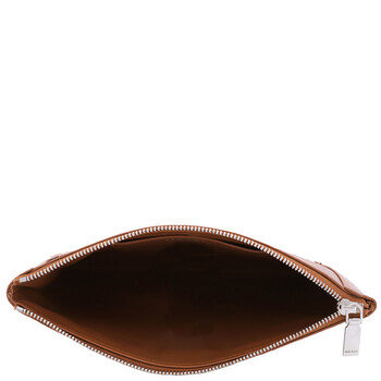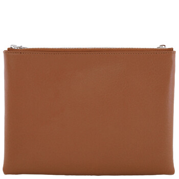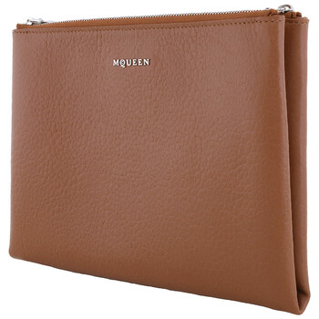 Alexander McQueen Ladies Pouch. SKU: 804436 1T1BN 2116. Color: Pecan/Silver. Alexander Mcqueen Ladies Pecan / Silver Logo-Plaque Clutch. This piece is crafted from pebbled texture calf leather and features a press-stud fastening for secure closure. It includes both front and back zip-fastening compartments for convenient storage, along with internal card slots and a slip pocket for added organization. The interior is finished with an embossed logo stamp, adding a subtle touch of branding. Calf Leather 100% Made in Italy.