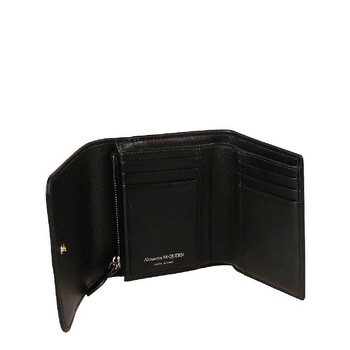 Alexander McQueen Ladies Wallets. SKU: 779226 1X30T 1000. Color: Black. Alexander Mcqueen Logo-Detailed Leather Wallet. This wallet features a metallic finish, a tri-fold design, debossed logos on the front and rear, stitched edges, a front press-stud fastening, card slots and one zip pocket. 100% Leather. Made in Italy.