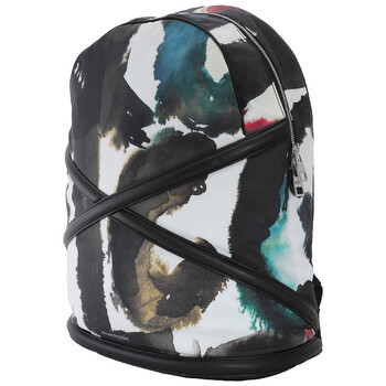 Alexander McQueen Men's Backpack. SKU: 726288 1AALG 8490. Color: Multicolor. Alexander Mcqueen Printed Effect Multicolored Nylon Backpack. This backpack offers a double zip closure, printed effect and harness detail, interior patch pocket and laptop compartment, adjustable padded shoulder straps, and a nylon canvas top handle. 100% Nylon. Made in Italy.