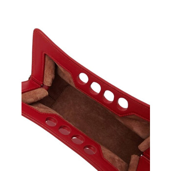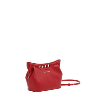 Alexander McQueen Ladies Shoulder Bag. SKU: 775908 1BLLI 6309. Barcode: 3666582590406. Color: Welsh Red. Size: 8.8 x 6.2 x 3.5 inches. Alexander Mcqueen The Peak Mini Shoulder Bag in Welsh Red. Handcrafted from calfskin leather, this Peak shoulder bag features a magnetic fastening and an adjustable leather strap. It is adorned with brass hardware with antique silver finishing and a contrasting suede lining. The bag showcases a curve-shaped magnetic frame, beautifully juxtaposed with a soft body for an elegant finish. Material: Calf Leather. Made in Italy.