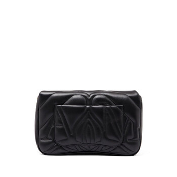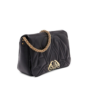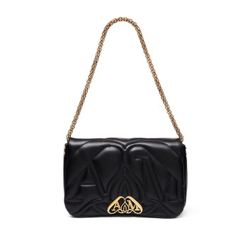 Alexander McQueen Ladies Shoulder Bag. Seal series. SKU: 7557031BLE11000. Barcode: 3666582492434. Color: Black. Size: 11.8 x 7.8 x 3.5 inches. Alexander Mcqueen The Seal Lambskin Bag In Black. Handcrafted from padded lambskin leather, this bag features a metal Seal fastening and a central compartment with one card slot. It includes one internal zipped pocket and a flat pocket at the back, all lined with tonal leather. The bag is completed with an antique gold-finished chain strap and is adorned with an exploded Seal logo, along with a gold-finished cut-out metal Seal closure for a striking finish. 100% Lambskin.