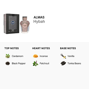 Discover the bold and captivating scent of Hybah by Almas, a distinguished Middle Eastern fragrance crafted in Saudi Arabia. Created especially for men, this 3.4 oz Eau de Parfum (EDP) Spray blends tradition with modern elegance, offering a powerful aroma that leaves a lasting impression. Whether you're heading to a special event or elevating your everyday style, Hybah is your go-to fragrance for confidence and charm.