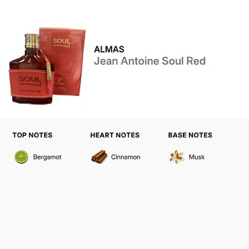 At the first spritz, Jean Antoine Soul Red awakens your senses with the fresh, citrusy spark of bergamot. As the fragrance unfolds, a warm heart of cinnamon adds a touch of spice and energy, creating a vibrant and confident core. Finally, a smooth base of musk lingers on the skin, leaving a lasting impression of subtle strength and comfort.