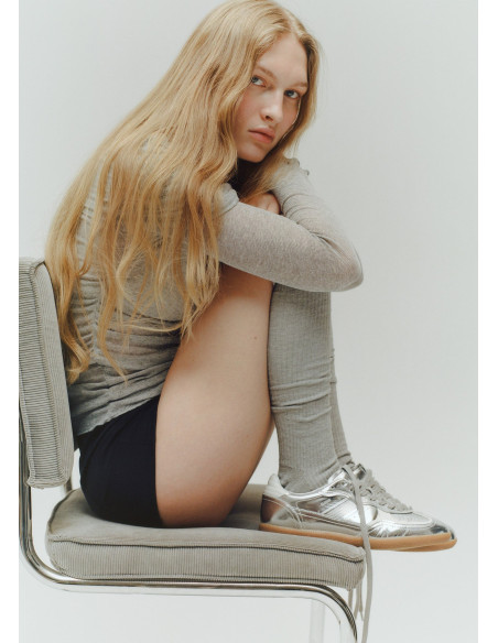 ქალის ბოტასი ALOHAS - Tb.490 Rife Shimmer Silver Cream Leather Sneakers