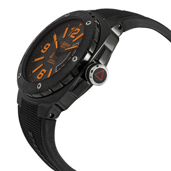 Black PVD stainless steel case with a black rubber strap. Fixed black PVD bezel. Black dial with luminous black hands and index hour markers. Arabic numerals appear at the 6, 9 and 12 o'clock positions. Minute markers around the outer rim. Dial Type: Analog. Luminescent hands and markers. Date display at the 3 o'clock position. Alpina calibre AL-525 automatic movement, based upon Sellita SW200-1, containing 26 Jewels, bitting at 28800 vph, and has a power reserve of approximately 38 hours. Scratch resistant sapphire crystal. Screw down crown. Transparent case back. Cushion case shape. Case size: 47 mm. Case thickness: 15.5 mm. Band width: 26 mm, band length: 8 inches. Tang clasp. Water resistant at 100 meters / 330 feet. Functions: date, hour, minute, second. Extreme Diver Series. Sport watch style. Watch label: Swiss Made. Item Variations: AL 525LBO5FBAEV6, AL.525LBO5FBAEV6, AL525LBO5FBAEV6. Alpina Extreme Diver Black Dial Automatic Men's Watch AL-525LBO5FBAEV6.