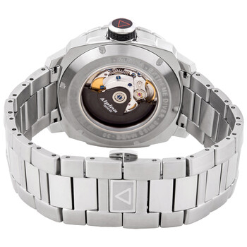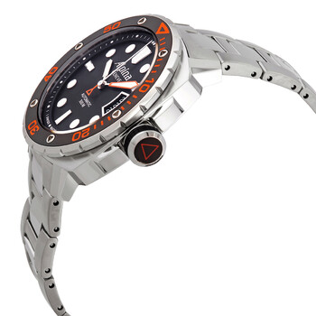 Stainless steel case with a stainless steel bracelet. Uni-directional rotating stainless steel bezel with a black ring. Black dial with luminous orange and silver-tone hands and dot hour markers. Minute markers around the outer rim. Dial Type: Analog. Luminescent hands and markers. Date display at the 3 o'clock position. Alpina calibre AL-525 automatic movement, based upon Sellita SW200-1, containing 26 Jewels, bitting at 28800 vph, and has a power reserve of approximately 38 hours. Scratch resistant sapphire crystal. Screw down crown. Transparent sapphire case back. Round Case shape. Case size: 44 mm. Case thickness: 13 mm. Band width: 22 mm / 20 mm. Deployment clasp. Water resistant at 300 meters / 1000 feet. Functions: date, hour, minute, second. Luxury watch style. Watch label: Swiss Made. Item Variations: AL 525LBO4V26B, AL.525LBO4V26B, AL525LBO4V26B. Alpina Seastrong Diver 300 Automatic Black Dial Steel Men's Watch AL-525LBO4V26B.