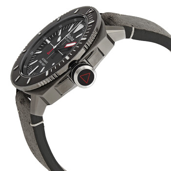 Titanium PVD stainless steel case with a grey leather strap. Uni-directional rotating titanium PVD bezel with an inlaid grey ring. Grey dial with luminous black hands and index hour markers. Minute markers around the outer rim. Dial Type: Analog. Luminescent hands and markers. Date display at the 3 o'clock position. Alpina calibre AL-525 automatic movement, based upon Sellita SW200-1, containing 26 Jewels, bitting at 28800 vph, and has a power reserve of approximately 38 hours. Scratch resistant sapphire crystal. Screw down crown. Transparent case back. Round case shape. Case size: 44 mm. Case thickness: 13.6 mm. Band width: 22 mm. Tang clasp. Water resistant at 300 meters / 1000 feet. Functions: date, hour, minute, second. Seastrong Diver 300 Series. Dive watch style. Watch label: Swiss Made. Alpina Seastrong Diver 300 Automatic Grey Dial Meatch AL-525LGGW4TV6.