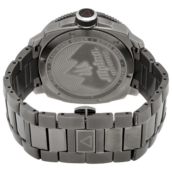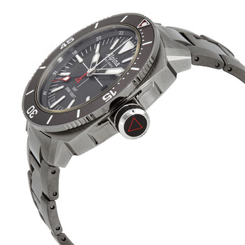 Titanium PVD stainless steel case and bracelet. Uni-directional rotating titanium PVD bezel with an inlaid black ring. Grey dial with luminous silver-tone hands and index hour markers. Minute markers. 24 hour markers around the outer rim. Dial Type: Analog. Luminescent hands and markers. Date display at the 3 o'clock position. Alpina calibre AL-247 quartz movement. Scratch resistant sapphire crystal. Screw down crown. Solid case back. Round case shape. Case size: 44 mm. Band width: 20 mm. Fold over clasp. Water resistant at 300 meters / 1000 feet. Functions: GMT, second time zone, hour, minute, second, date. Seastrong Diver Gmt Series. Casual watch style. Watch label: Swiss Made. Alpina Seastrong Diver GMT Titanium PVD Grey Dial Men's Watch AL-247LGG4TV6B.
