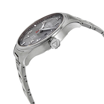Stainless steel case with a silver-tone stainless steel bracelet. Fixed stainless steel bezel. Grey sunray dial with luminous silver-tone hands and Arabic numeral hour markers. Minute markers around the outer rim. Dial Type: Analog. Luminescent hands and markers. Date display at the 3 o'clock position. Alpina Calibre AL-525 automatic movement with a 38-hour power reserve. Scratch resistant sapphire crystal. Transparent case back. Round case shape, case size: 44 mm, case thickness: 11 mm. Band width: 22-20 mm. Butterfly clasp. Water resistant at 100 meters / 330 feet. Functions: date, hour, minute, second. Luxury watch style. Watch label: Swiss Made. Item Variations: AL 525GB4S6B, AL.525GB4S6B, AL525GB4S6B. Alpina Startimer Pilot Sunstar Automatic Men's Watch AL-525GB4S6B.
