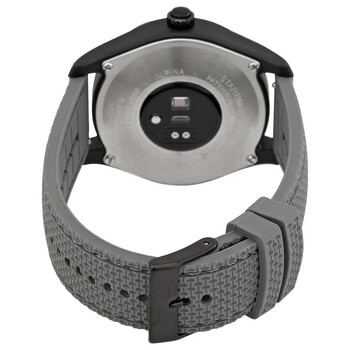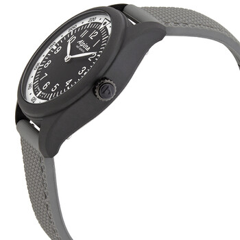 Black glass fiber case with a grey rubber strap. Fixed black glass fiber bezel. Black dial with luminous white hands and index hour markers. Minute markers around the outer rim. Dial Type: Analog. Luminescent hands and markers. Alpina Calibre MMT-187 quartz movement. Scratch-resistant convex sapphire crystal. Pull / push crown. Solid case back. Round case shape, case size: 41.5 mm, case thickness: 14 mm. Tang clasp. Water resistant at 50 meters / 165 feet. Functions: hour, minute, second. Additional Info: compatible with the alpina smartwatch app on android and ios. Startimerx Balance Series. Sport watch style. Watch label: Swiss Made. Alpina Startimerx Balance Quartz Black Dial Men's Watch AL-187BW4S6.