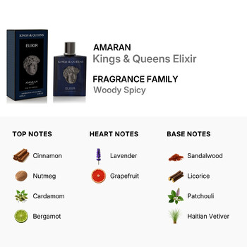 Designed by Amaran, a luxury niche fragrance brand, Kings & Queens Elixir is crafted with precision and passion, making it a standout addition to any fragrance collection. The 3.4 oz EDP spray delivers long-lasting performance, ideal for both daily wear and special occasions.