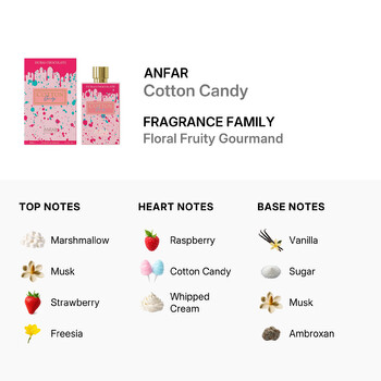 Indulge in the irresistible charm of Anfar Cotton Candy—where every spray feels like a sprinkle of sugar and a burst of happiness. Available in a 2.7 oz Extrait de Parfum Spray, this fragrance is only valid for shipment in the Contiguous United States and Canada. Barcode: 6294022301434.
