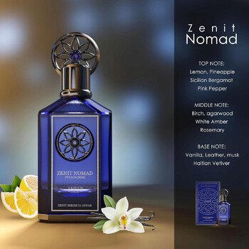 Encased in an elegantly designed 3.4 oz bottle, Zenit Nomad is more than just a fragrance—it's a statement of individuality and strength. Whether worn for a special occasion or as a signature daily scent, this Anfar creation is the perfect companion for the man who embraces life's journey with confidence and style.