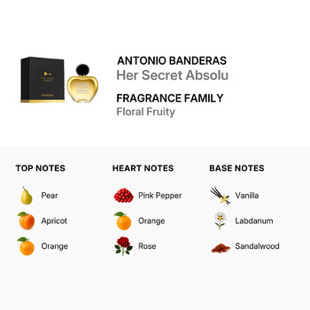 Step into a world of mystery and allure with Antonio Banderas' Her Secret Absolu. Launched in 2016, this exquisite ladies' fragrance is crafted for those who appreciate the finer things in life. Belonging to the Floral Fruity family, this scent captures the imagination with its lush and vibrant composition.