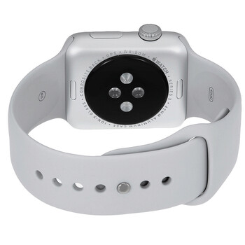 Silver anodized aluminum case with a silver sport bracelet. Fixed silver anodized aluminum bezel. Changeable faces with widgets dial. Dial Type: digital. WatchOS 4.0 quartz movement with a 18-hour power reserve. Scratch resistant aluminosilicate glass crystal. Composite case back. Case size: 36.4 mm x 42.5 mm. Case thickness: 11.4 mm. Rectangle case shape. Band length: 8.3 inches. Buckle clasp. Water resistant at 50 meters / 165 feet. Functions: date, day, hour, minute, second, accelerometer, altimeter, barometer, compass, gyroscope, heart rate, light sensor. Additional Info: capacity 8gb, siri integration, integrated gps, bluetooth 4.2, 802.11b/g/n wi-fi, apple watchos 4.0, 1m magnetic charging cable, usb power adapter. Sport watch style. Apple Watch Series 3 42mm Silver Aluminum Case (GPS Only) Smartwatch MQL02LL/A.