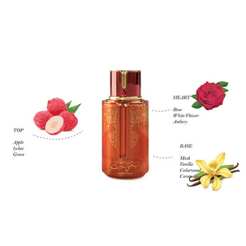 At the top, Lychee Musk opens with a refreshing burst of juicy lychee, crisp green notes, and sweet apple, immediately capturing attention with its bright and playful energy. As the fragrance unfolds, a delicate heart of rose adds a soft and romantic touch, making it feminine and graceful. The base notes create a lasting impression with creamy vanilla, warm caramel, smooth musk, and earthy cedarwood, leaving a trail that is both comforting and captivating.