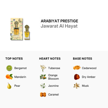 Arabiyat Prestige’s Jawarat Al Hayat is more than just a fragrance—it's a statement of timeless elegance and modern charm. Barcode: 6290102036845. Please note: This item is only valid for shipment within the Contiguous United States & Canada.